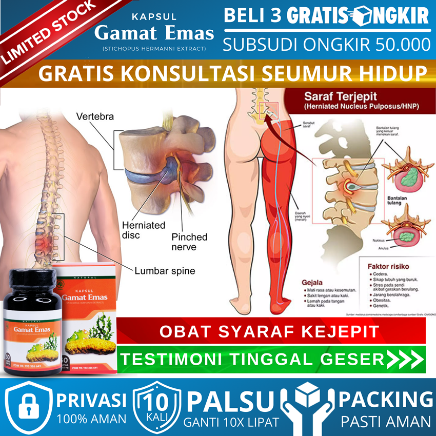 Obat Sakit Saraf Kejepit Pinggang Nyeri Leher Paha Kaki Pinggul Bokong Syaraf Kecetit Urat Otot Tegang