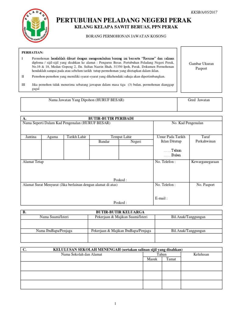 Borang Permohonan Pekerjaan Pdf